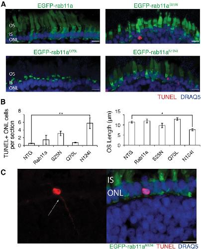 The severe autosomal dominant retinitis pigmentosa rhodopsin mutant Ter349Glu mislocalizes and induces rapid rod cell death., Hollingsworth TJ, Gross AK., J Biol Chem. October 4, 2013; 288 (40): 29047-55. |