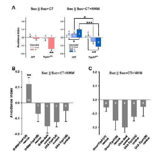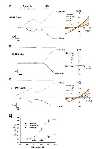 The Mosquito Repellent Citronellal Directly Potentiates Drosophila TRPA1, Facilitating Feeding Suppression. , Du EJ, Ahn TJ, Choi MS, Kwon I, Kim HW , Kwon JY, Kang K., Mol Cells. October 1, 2015; 38 (10): 911-7.