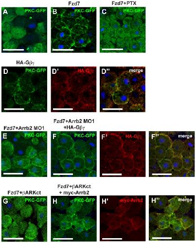 β-Arrestin interacts with the beta/gamma subunits of trimeric G-proteins and dishevelled in the Wnt/Ca(2+) pathway in xenopus gastrulation., Seitz K, Dürsch V, Harnoš J, Bryja V, Gentzel M, Schambony A., PLoS One. January 17, 2014; 9 (1): e87132. |