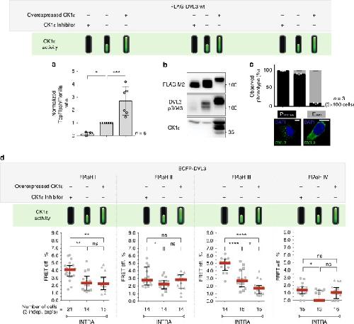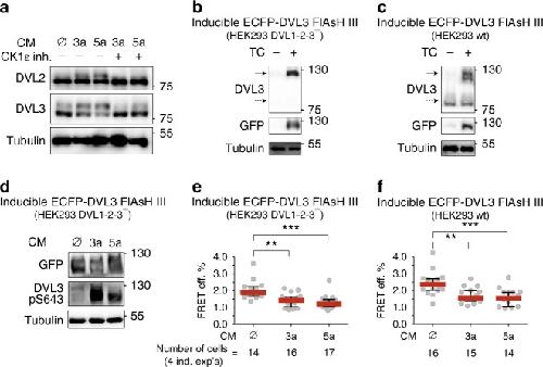 Dishevelled-3 conformation dynamics analyzed by FRET-based biosensors reveals a key role of casein kinase 1., Harnoš J, Cañizal MCA, Jurásek M, Kumar J, Holler C, Schambony A, Hanáková K, Bernatík O, Zdráhal Z, Gömöryová K, Gybeľ T, Radaszkiewicz TW, Kravec M, Trantírek L, Ryneš J, Dave Z, Fernández-Llamazares AI, Vácha R, Tripsianes K, Hoffmann C, Bryja V., Nat Commun. April 18, 2019; 10 (1): 1804. |