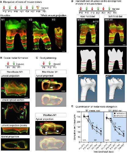 Spatiotemporal monitoring of hard tissue development reveals unknown features of tooth and bone development., Gonzalez Lopez M, Huteckova B, Lavicky J, Zezula N, Rakultsev V, Fridrichova V, Tuaima H, Nottmeier C, Petersen J, Kavkova M, Zikmund T, Kaiser J, Lav R, Star H, Bryja V, Henyš P, Vořechovský M, Tucker AS, Harnos J, Buchtova M, Krivanek J., Sci Adv. August 2, 2023; 9 (31): eadi0482. |