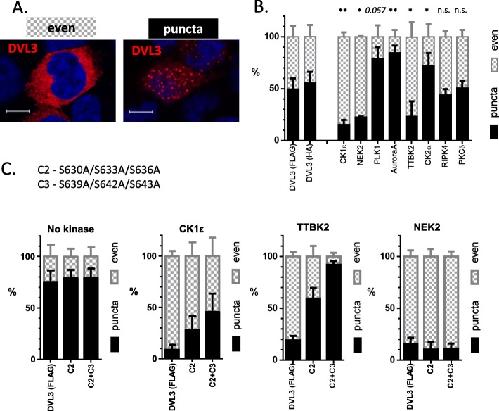 Functional analysis of dishevelled-3 phosphorylation identifies distinct mechanisms driven by casein kinase 1ϵ and frizzled5., Bernatík O, Šedová K, Schille C, Ganji RS, Červenka I, Trantírek L, Schambony A, Zdráhal Z, Bryja V., J Biol Chem. August 22, 2014; 289 (34): 23520-33. |