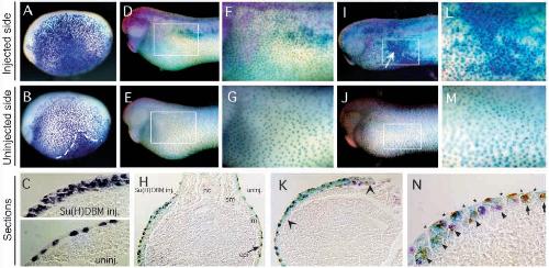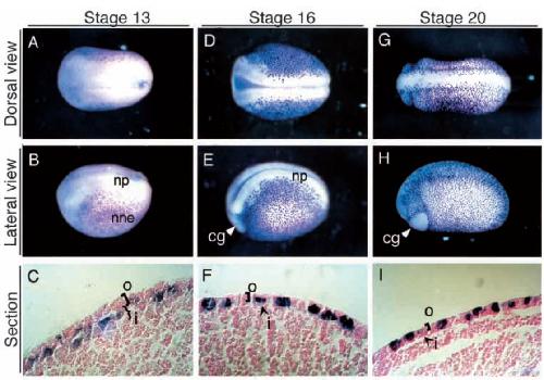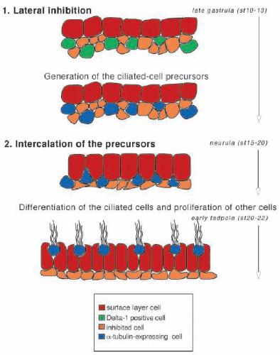 A two-step mechanism generates the spacing pattern of the ciliated cells in the skin of Xenopus embryos., Deblandre GA, Wettstein DA, Koyano-Nakagawa N, Kintner C., Development. November 1, 1999; 126 (21): 4715-28. |