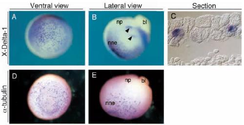 Xenopus neuralized is a ubiquitin ligase that interacts with XDelta1 and regulates Notch signaling., Deblandre GA, Lai EC, Kintner C., Dev Cell. December 1, 2001; 1 (6): 795-806. |