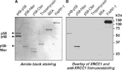 XRCC1 interacts with the p58 subunit of DNA Pol alpha-primase and may coordinate DNA repair and replication during S phase., Lévy N, Oehlmann M, Delalande F, Nasheuer HP, Van Dorsselaer A, Schreiber V, de Murcia G, Ménissier-de Murcia J, Maiorano D, Bresson A., Nucleic Acids Res. June 1, 2009; 37 (10): 3177-88. |
