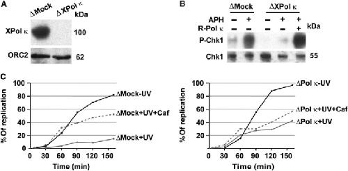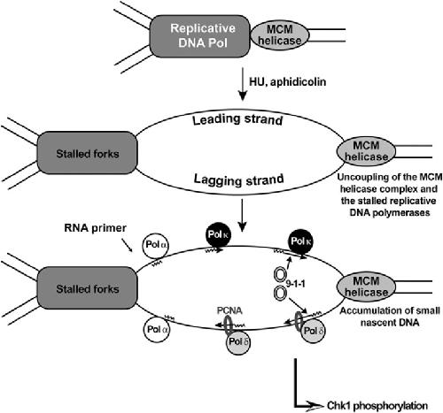 DNA polymerase κ-dependent DNA synthesis at stalled replication forks is important for CHK1 activation., Bétous R, Pillaire MJ, Pierini L, van der Laan S, Recolin B, Ohl-Séguy E, Guo C, Niimi N, Grúz P, Nohmi T, Friedberg E, Cazaux C, Maiorano D, Hoffmann JS., EMBO J. July 31, 2013; 32 (15): 2172-85. |