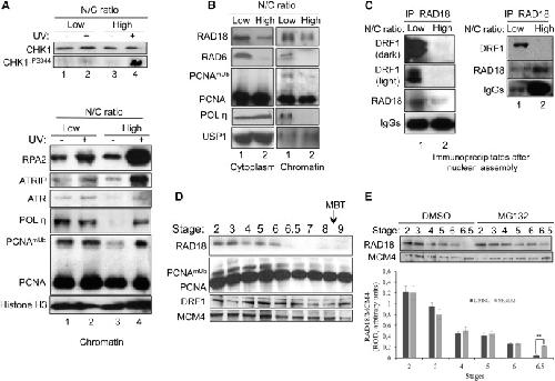 RAD18 Is a Maternal Limiting Factor Silencing the UV-Dependent DNA Damage Checkpoint in Xenopus Embryos., Kermi C, Prieto S, van der Laan S, Tsanov N, Recolin B, Uro-Coste E, Delisle MB, Maiorano D., Dev Cell. August 10, 2015; 34 (3): 364-72. |