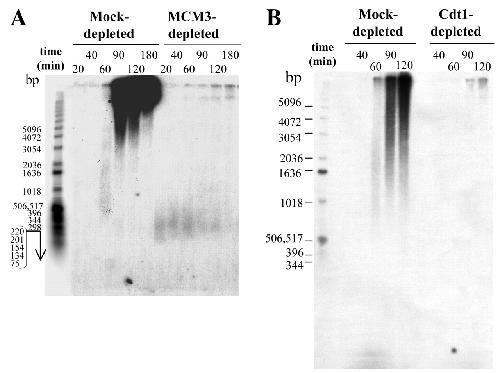 Recombinant Cdt1 induces rereplication of G2 nuclei in Xenopus egg extracts., Maiorano D, Krasinska L, Lutzmann M, Mechali M., Curr Biol. January 26, 2005; 15 (2): 146-53. |