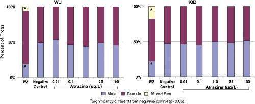 Does atrazine affect larval development and sexual differentiation of South African clawed frogs? , Kloas W , Lutz I, Urbatzka R, Springer T, Krueger H, Wolf J, Holden L, Hosmer A., Ann N Y Acad Sci. April 1, 2009; 1163 437-40.