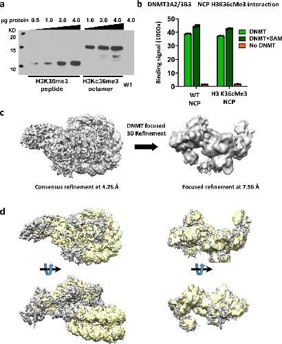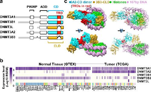 Structure of nucleosome-bound DNA methyltransferases DNMT3A and DNMT3B. , Xu TH, Liu M, Zhou XE , Liang G, Zhao G, Xu HE, Melcher K, Jones PA., Nature. October 1, 2020; 586 (7827): 151-155.