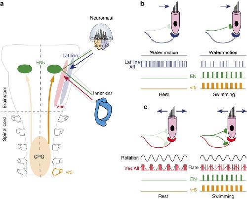 Spinal corollary discharge modulates motion sensing during vertebrate locomotion. , Chagnaud BP, Banchi R, Simmers J, Straka H ., Nat Commun. September 4, 2015; 6 7982.