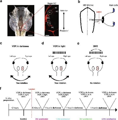 Acute consequences of a unilateral VIIIth nerve transection on vestibulo-ocular and optokinetic reflexes in Xenopus laevis tadpoles. , Soupiadou P, Gordy C, Forsthofer M, Sanchez-Gonzalez R, Straka H ., J Neurol. December 1, 2020; 267 (Suppl 1): 62-75.