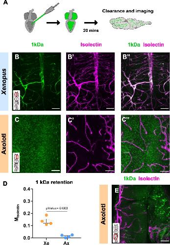Species-specific blood-brain barrier permeability in amphibians. , Antesberger S, Stiening B, Forsthofer M, Joven Araus A, Eroglu E, Huber J, Heß M, Straka H , Sanchez-Gonzalez R., BMC Biol. February 11, 2025; 23 (1): 43.