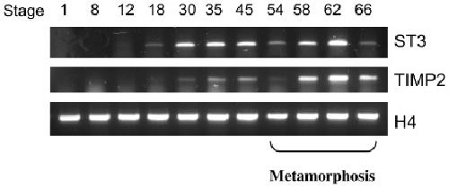 Characterization of Xenopus tissue inhibitor of metalloproteinases-2: a role in regulating matrix metalloproteinase activity during development. , Fu L, Sun G , Fiorentino M, Shi YB ., PLoS One. January 1, 2012; 7 (5): e36707.