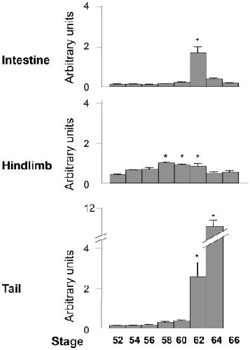 Spatio-temporal expression profile of stem cell-associated gene LGR5 in the intestine during thyroid hormone-dependent metamorphosis in Xenopus laevis. , Sun G , Hasebe T , Fujimoto K , Lu R, Fu L, Matsuda H, Kajita M, Ishizuya-Oka A , Shi YB ., PLoS One. October 22, 2010; 5 (10): e13605.