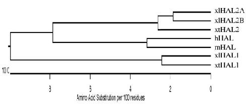 Differential regulation of two histidine ammonia-lyase genes during Xenopus development implicates distinct functions during thyroid hormone-induced formation of adult stem cells. , Luu N, Wen L, Fu L, Fujimoto K , Shi YB , Sun G ., Cell Biosci. November 13, 2013; 3 (1): 43.