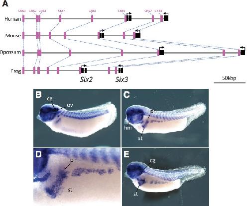 Comparative genomics-based identification and analysis of cis-regulatory elements. , Ogino H , Ochi H , Uchiyama C, Louie S, Grainger RM ., Methods Mol Biol. January 1, 2012; 917 245-63.