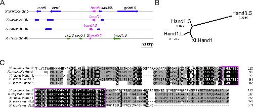 Asymmetrically reduced expression of hand1 homeologs involving a single nucleotide substitution in a cis-regulatory element. , Ochi H , Suzuki N, Kawaguchi A, Ogino H ., Dev Biol. May 15, 2017; 425 (2): 152-160.