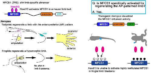 The shh limb enhancer is activated in patterned limb regeneration but not in hypomorphic limb regeneration in Xenopus laevis. , Tada R, Higashidate T, Amano T , Ishikawa S, Yokoyama C, Kobari S, Nara S, Ishida K, Kawaguchi A, Ochi H , Ogino H , Yakushiji-Kaminatsui N, Sakamoto J, Kamei Y, Tamura K , Yokoyama H ., Dev Biol. May 27, 2023; 500 22-30.