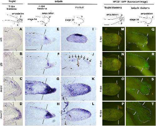 Different requirement for Wnt/ β-catenin signaling in limb regeneration of larval and adult Xenopus. , Yokoyama H , Maruoka T, Ochi H , Aruga A , Ohgo S, Ogino H , Tamura K ., PLoS One. January 1, 2011; 6 (7): e21721.