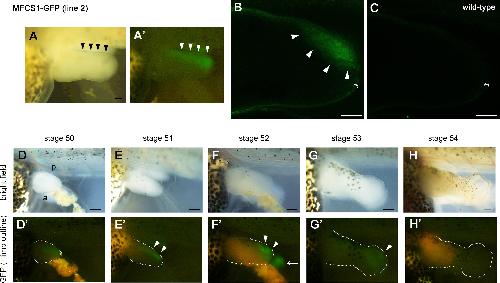 Resources and transgenesis techniques for functional genomics in Xenopus. , Ogino H , Ochi H ., Dev Growth Differ. May 1, 2009; 51 (4): 387-401.