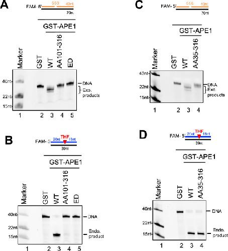 APE1 senses DNA single-strand breaks for repair and signaling. , Lin Y, Raj J, Li J, Ha A, Hossain MA, Richardson C, Mukherjee P, Yan S ., Nucleic Acids Res. February 28, 2020; 48 (4): 1925-1940.