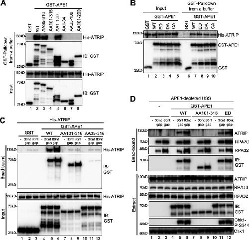 APE1 recruits ATRIP to ssDNA in an RPA-dependent and -independent manner to promote the ATR DNA damage response. , Lin Y, Li J, Zhao H , McMahon A, McGhee K, Yan S ., Elife. May 22, 2023; 12