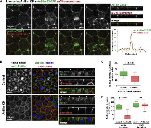Anillin regulates cell-cell junction integrity by organizing junctional accumulation of Rho-GTP and actomyosin. , Reyes CC, Jin M, Breznau EB, Espino R, Delgado-Gonzalo R, Goryachev AB, Miller AL ., Curr Biol. June 2, 2014; 24 (11): 1263-70.