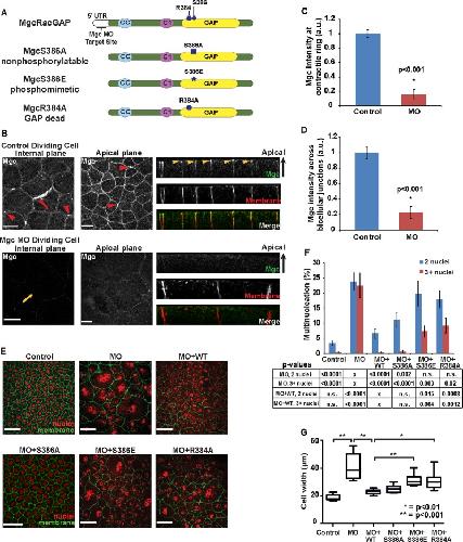 MgcRacGAP restricts active RhoA at the cytokinetic furrow and both RhoA and Rac1 at cell-cell junctions in epithelial cells. , Breznau EB, Semack AC, Higashi T, Miller AL ., Mol Biol Cell. July 1, 2015; 26 (13): 2439-55.