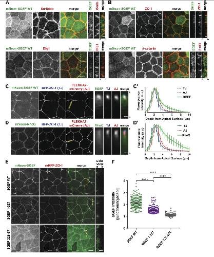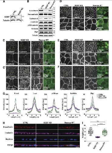 SGEF forms a complex with Scribble and Dlg1 and regulates epithelial junctions and contractility. , Awadia S, Huq F, Arnold TR, Goicoechea SM, Sun YJ, Hou T, Kreider-Letterman G, Massimi P, Banks L, Fuentes EJ, Miller AL , Garcia-Mata R., J Cell Biol. August 5, 2019; 218 (8): 2699-2725.