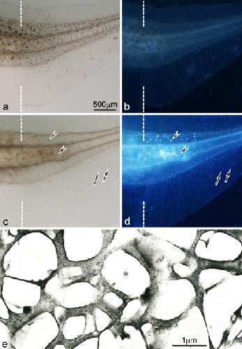 Unusual leucophore-like cells specifically appear in the lineage of melanophores in the periodic albino mutant of Xenopus laevis. , Fukuzawa T ., Pigment Cell Res. June 1, 2004; 17 (3): 252-61.