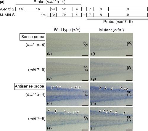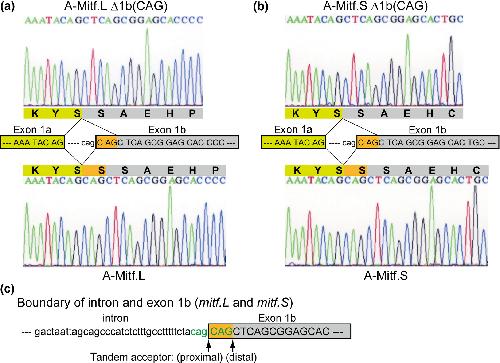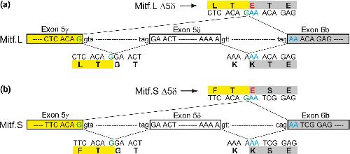 A wide variety of Mitf transcript variants are expressed in the Xenopus laevis periodic albino mutant. , Fukuzawa T ., Genes Cells. June 19, 2018;