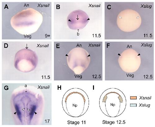 Snail precedes slug in the genetic cascade required for the specification and migration of the Xenopus neural crest. , Aybar MJ , Nieto MA, Mayor R ., Development. February 1, 2003; 130 (3): 483-94.