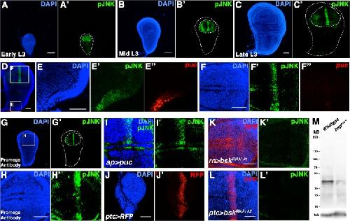 Localized JNK signaling regulates organ size during development., Willsey HR, Zheng X, Carlos Pastor-Pareja J, Willsey AJ, Beachy PA, Xu T., Elife. January 28, 2016; 5