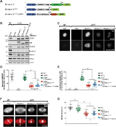 The Borealin dimerization domain interacts with Sgo1 to drive Aurora B-mediated spindle assembly. , Bonner MK, Haase J, Saunders H, Gupta H, Li BI, Kelly AE ., Mol Biol Cell. September 15, 2020; 31 (20): 2207-2218.