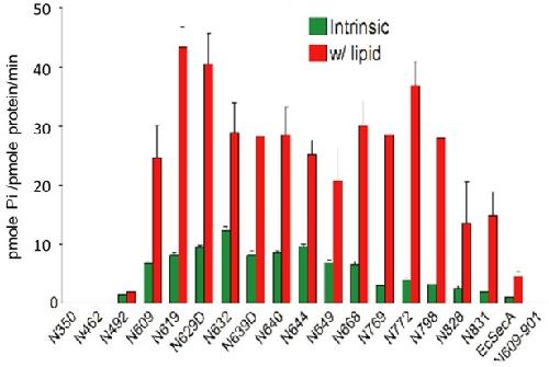 Specificity of SecYEG for PhoA precursors and SecA homologs on SecA protein-conducting channels., Zhang H, Hsieh YH, Lin BR, Yu L, Yang H, Jiang C, Sui SF, Tai PC., Biochem Biophys Res Commun. July 26, 2013; 437 (2): 212-216.