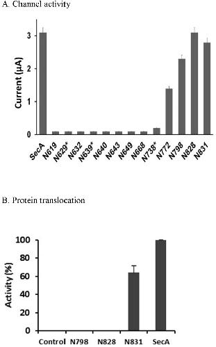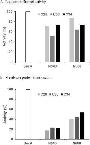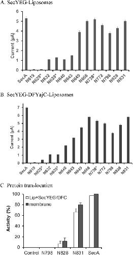 SecA alone can promote protein translocation and ion channel activity: SecYEG increases efficiency and signal peptide specificity., Hsieh YH, Zhang H, Lin BR, Cui N, Na B, Yang H, Jiang C, Sui SF, Tai PC., J Biol Chem. December 30, 2011; 286 (52): 44702-9.