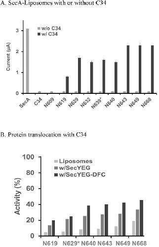 Reconstitution of functionally efficient SecA-dependent protein-conducting channels: transformation of low-affinity SecA-liposome channels to high-affinity SecA-SecYEG-SecDF·YajC channels., Hsieh YH, Zhang H, Wang H, Yang H, Jiang C, Sui SF, Tai PC., Biochem Biophys Res Commun. February 15, 2013; 431 (3): 388-92.