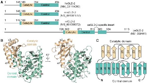 Structures of mammalian GLD-2 proteins reveal molecular basis of their functional diversity in mRNA and microRNA processing., Ma XY, Zhang H, Feng JX, Hu JL, Yu B, Luo L, Cao YL, Liao S, Wang J, Gao S., Nucleic Acids Res. September 4, 2020; 48 (15): 8782-8795.