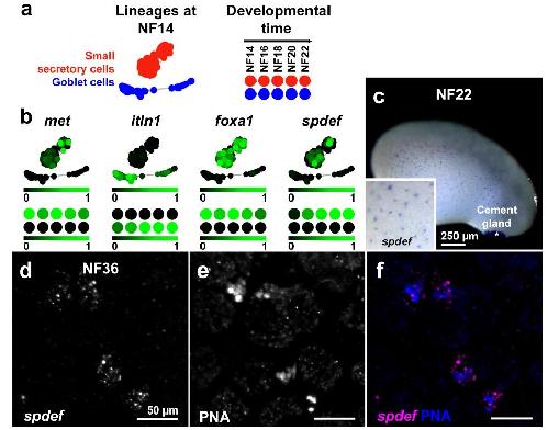 A secretory cell type develops alongside multiciliated cells, ionocytes and goblet cells, and provides a protective, anti-infective function in the frog embryonic mucociliary epidermis., Dubaissi E, Rousseau K, Lea R, Soto X, Nardeosingh S, Schweickert A, Amaya E, Thornton DJ, Papalopulu N., Development. April 1, 2014; 141 (7): 1514-25. |