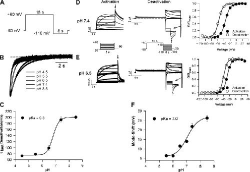 Proton block of the pore underlies the inhibition of hERG cardiac K+ channels during acidosis. , Van Slyke AC, Cheng YM, Mafi P, Allard CR, Hull CM, Shi YP , Claydon TW., Am J Physiol Cell Physiol. June 15, 2012; 302 (12): C1797-806.