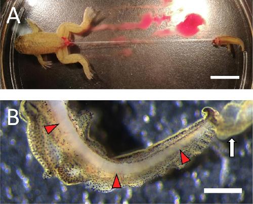Vitamin A induced homeotic hindlimb formation on dorsal and ventral sides of regenerating tissue of amputated tails of Japanese brown frog tadpoles. , Tazawa I , Yaoita Y ., Dev Growth Differ. December 1, 2017; 59 (9): 688-700.