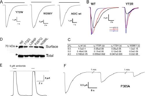 Interaction of the aromatics Tyr-72/Trp-288 in the interface of the extracellular and transmembrane domains is essential for proton gating of acid-sensing ion channels. , Li T , Yang Y , Canessa CM., J Biol Chem. February 13, 2009; 284 (7): 4689-94.