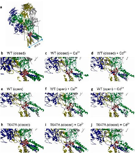 Outlines of the pore in open and closed conformations describe the gating mechanism of ASIC1. , Li T , Yang Y , Canessa CM., Nat Commun. January 1, 2011; 2 399.