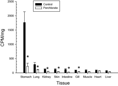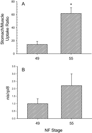 Changes in gastric sodium-iodide symporter ( NIS) activity are associated with differences in thyroid gland sensitivity to perchlorate during metamorphosis. , Carr JA, Murali S, Hu F, Goleman WL , Carr DL, Smith EE, Wages M., Gen Comp Endocrinol. August 1, 2015; 219 16-23.
