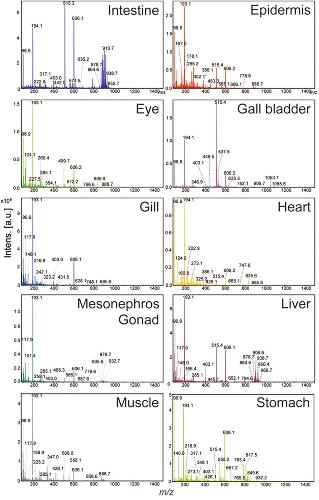 Metabolomic approach for identifying and visualizing molecular tissue markers in tadpoles of Xenopus tropicalis by mass spectrometry imaging., Goto-Inoue N, Kashiwagi A, Kashiwagi K, Mori T., Biol Open. September 15, 2016; 5 (9): 1252-9.