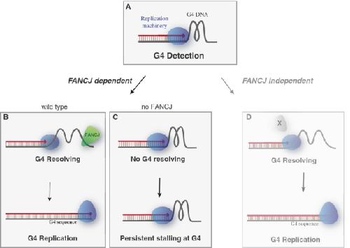 FANCJ promotes DNA synthesis through G-quadruplex structures., Castillo Bosch P, Segura-Bayona S, Koole W, van Heteren JT, Dewar JM, Tijsterman M, Knipscheer P., EMBO J. November 3, 2014; 33 (21): 2521-33.
