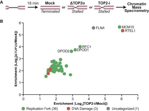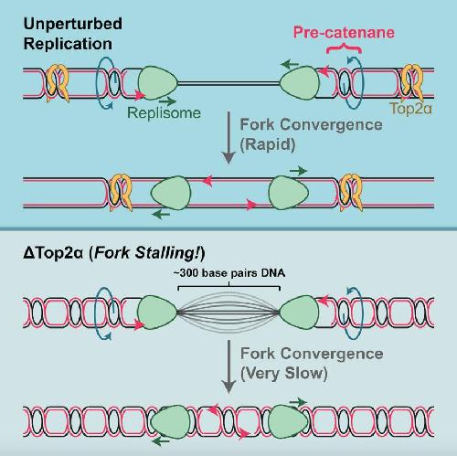Topoisomerase II Is Crucial for Fork Convergence during Vertebrate Replication Termination., Heintzman DR, Campos LV, Byl JAW, Osheroff N, Dewar JM., Cell Rep. October 8, 2019; 29 (2): 422-436.e5.