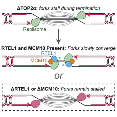 RTEL1 and MCM10 overcome topological stress during vertebrate replication termination., Campos LV, Van Ravenstein SX, Vontalge EJ, Greer BH, Heintzman DR, Kavlashvili T, McDonald WH, Rose KL, Eichman BF, Dewar JM., Cell Rep. February 28, 2023; 42 (2): 112109.