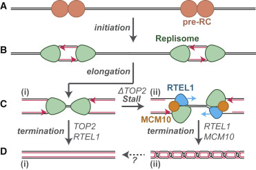 Mechanisms of DNA replication termination., Dewar JM, Walter JC., Nat Rev Mol Cell Biol. August 1, 2017; 18 (8): 507-516.